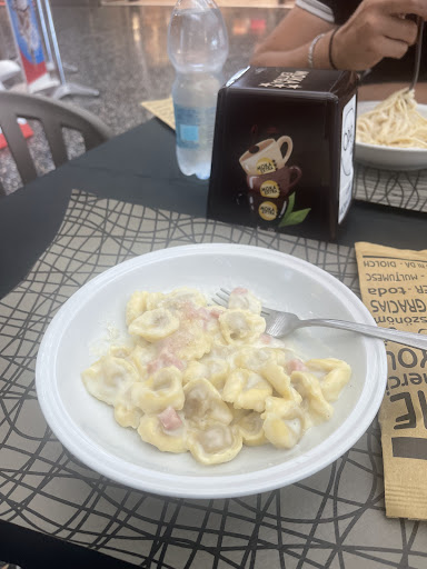 Piccola bar all'interno del centro Arezzo. Molto carino con tavolini dove poter fare colazione, ed a vedere le paste sembrano molto buone,il caffè avendolo provato lo certifico buono. Mi sono fermato per pranzo prendendo una insalata mista con polpo,si presenta molto bella e anche il polpo non era male,consigliata. Ho preso anche un piccolo pezzo di Margherita ma non mi è piaciuta fino in fondo la pasta non era di mio gradimento. Mi ha dato fastidio che non ci fosse nessun prezzo esposto per una mia personale riflessione, ma alla fine insalata,pizza,caffè acqua € 13,70 se sommiamo tutto è un buon prezzo. Preparano anche dei...