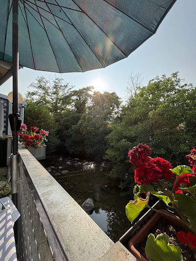 The restaurant is located in a very beautiful small town. It has outside seating directly next to a beautiful creek. The food was very delicious, definitely one of the best pizzas I‘ve ever eaten and also totally affordable. All pizzas are less than €10. For the check we just had to wait a little. But that was alright for the ambiance...