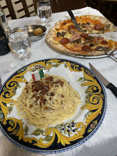 Wonderful little restaurant off the beaten path. Short walk from the train station. Near the main piazza. We really like the meat sauce and when you order the house wine it’s €9 for the whole bottle. The pizzas were ok. Perfectly good. But not the best. The coke was on tap and can come w ice! We enjoyed the meal and found it very affordable. Right away they bring a small plate of salted boiled dough balls. They were great. Like a bagel meets a dough nut hole. The only thing we didn’t care for was the fried plate appetizer. It was €12 so the most expensive thing we ordered. Not good as it was very hard. The rest was just wonderful. We enjoyed the atmosphere...