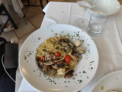 Allora ,purtroppo io ,in totale onestà,devo dire sinceramente che non siamo stati molto contenti della nostra serata.....allora arriviamo in una decina di persone,prenotiamo ....praticamente tutti pizza e un pesce....nulla di che diciamo... be' intanto il servizio lascia un po' a desiderare.... Non arrivano i bicchieri ma arriva il bere,poi arriva una bottiglia di vino frizzante che da loro sarebbe il loro sfuso ( lo chiamano così) e il cameriere nemmeno riesce a aprirlo e si dimentica i calici....va bè....poi l'attesa....ben 45 minuti di attesa dove però nel frattempo venivano servite pizze a clienti arrivati ben dopo di noi.....nel frattempo arriva il pesce ma non le pizze...anche qui ......altri quasi 20 minuti di attesa.....arrivano le pizze anche lì a scaglioni.....poi finiamo ,vino dolce per la torta anche qui.....van servite prima le donne in teoria.....cmq.....ora il conto....pagare 30 euro per un vino dolce del genere è un furto.....sinceramente non pensavo e in più 1 euro a persona per il servizio torta che è vero la abbiamo portata noi ma caspita ci abbiamo cenato da voi...dimenticavo.....30 euro anche per il pesce( branzino) di circa 500 grammi c'era scritto .....sul piatto credo ci fossero meno di 200 gr di polpa.... be' insomma devo dire che siamo rimasti tutti abbastanza deludi soprattutto dal servizio e attesa che davvero sono molto da rivedere e migliorare....peccato perché di camerieri c'è ne sono davvero parecchi che girano e un servizio e attesa così sono molto...