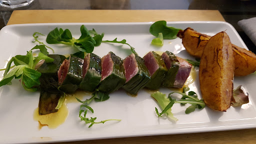 … finalmente ad Ariccia sono riuscito a trovare un posto dove sentirsi coccolato Martina, la maitre di sala, è veramente amabile e gentilissima Ti accoglie subito con un esuberante sorriso che traspare dalla mascherina nera!! Poi ti racconta il menù e ti consiglia i piatti del giorno Mi sono fatto rapire dal suo racconto del filetto con funghi porcini spadellati accompagnati da patate al forno! Mi sono fatto consigliate un buon rosso, al calice e mi ha fatto assaggiare un un Pignatello e nero d’Avola in purezza! Nero di Serramarrocco, una bella scelta, robusto, profumato anche se sedimentato un po’, poi arriva il filetto, forse un po’ più in là della mia scelta al sangue, ma veramente delizioso comunque I porcini poi a completare il piatto delicatamente spadellati e profumato di prezzemolo, le patate deliziosamente arrostite al forno, fatte a cubotti con la buccia e preparate finalmente senza aglio, che bontà!! Mi consigliano macedonia di frutta o tiramisù, per cui affondi il cucchiaino in uno strepitoso e soffice dessert con tocchetti di cioccolato fondente ben ricoperto da abbondante cacao amaro in polvere, fantastico!! Invece del caffè, visto che avevo avuto modo di vedere in enoteca una vastissima gamma di spirits, mi faccio consigliare un buon ruhm artigianale La scelta mi porta verso un prodotto di una rata eccellenza fatto interamente in Italia da Roner, l’R74, profumato di spezie e di sentori di fiori e frutta Poi una piacevolissima chiacchierata con Martina al momento del conto nel corso della quale, vista la sua preparazione e la gamma di prodotti ricercati della sua enoteca, ho consigliato il Cioccolato del mio compagno di scuola a Maglie, Cioccolato Maglio e la Tintilia del Molise del mio amico Roberto De Stefano di Cantine di Remo oltre ai vini di Marco Carpineti e della Tenuta Ulisse del mio amico Luigi Ulisse Mi fa sempre piacere far conoscere le cose che amo Alla prox con immenso piacere Complimenti...