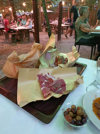 La Selvotta in Ariccia is a truly enchanting dining experience, set in the heart of the picturesque Castelli Romani region. The open-air setting is breathtaking, with long wooden tables ideal for groups, as well as smaller, more intimate tables perfect for a romantic evening. Dining beneath a canopy of trees, with the occasional sight of roaming wild boars, creates a unique atmosphere that feels entirely immersed in nature, the perfect backdrop for an authentic Roman countryside meal.