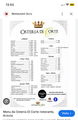 Read moreClassifica osteria romana Non prongono più i menù a prezzi fisso come in passato ma solo menù alla carta. L'Antipasto prevede: tagliare di salumi, porchetta, formaggi, olive verdi e mozzarelle. In più ci sono le Bruschette al pomodoro e i fagioli all' uccelletta. I primi sono i classici della cucina romana, quindi parliamo di gricia, cacio e pepe, matriciana e carbonara. Altri piatti sono disponibili sono in inverno, come la polenta con spuntature. Bevande acqua o vino della casa Dolci tiramisù fatto in casa oppure ciambelline al vino. Diciamo che ho frequentato questo locale varie volte e questa di cui parlo oggi è la quarta esperienza vissuta. È stato sempre il nostro punto di riferimento e preferito tra tutte le fraschette che si trovano accanto, ma purtroppo ho trovato alcune cose peggiorate. Prima di tutto l'abolizione del menù a prezzo fisso, le porzioni sembravano più abbondanti e più curate. Il servizio è un po' disattento e non costante al tavolo, i tavolini e le panche su cui sedersi ( le solite da sempre) sono un po' instabili e soprattutto scomodi. L'ambiente interno non ben climatizzato poiché la porta è perennemente aperta e i tavolini all' esterno non sono molto meglio, ci sono le ventole dell' aria condizionata che emanano aria calda e in base a dove ti siedi arrivano ventate di aria calda in faccia. Inoltre il chiasso è veramente tanto, il locale è su strada quindi macchine , moto e motorini che passano, l'immediata vicinanza con le altre fraschette i venditori ambulanti che passano tra i tavoli per vendere oggettistica, chi canta e chiede monete..... Che dire?! Mal di testa solo a pensarci! I piatti sono buoni non eccelenti e la cacio e pepe di cui tanto vantano, piatto premiato da Alessandro Borghese era terribilmente salato, cremoso forse anche troppo ma terribilmente salato, che dipende dalla stagionatura del cacio ok sono d'accordo però eccedeva anche nel pepe. Mi dispiace ma era tutto molto meglio prima, nel 2019 quando li ho conosciuti per la prima volta. Certamente il locale avrebbe bisogno di un rinnovamento, soprattutto le panchine e i tavolini e il cibo è un po' da rivedere. La bistecca di manzo prima di essere cotta, si dovrebbe chiedere il grado di cottura desiderato. Inoltre non regalano più neanche le ciambelline al vino a fine pasto,...