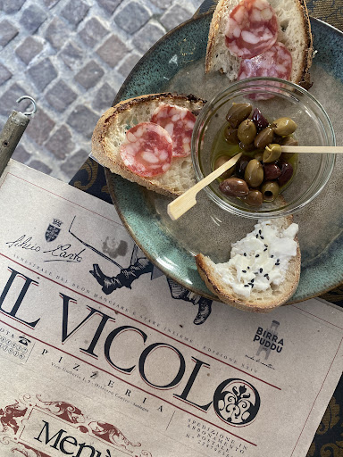 Read morePrima volta alla pizzeria Il Vicolo in occasione di una grande tavolata di famiglia. Fino a quel momento avevo sentito pareri entusiastici ed ero abbastanza curiosa di provare. Devo riconoscere che l'intera 'esperienza" è andata oltre le aspettative: non mi sento di definirla una comune pizzeria, ma un locale delizioso, dove materie prime di altissima qualità, prevalentemente del territorio, e creatività nel rivisitare la tradizione (vedi la pizza cotta in acqua) hanno un peso fondamentale e collocano Il Vicolo una spanna sopra a tutte le pizzeria della zona. Pizza lievitata, cotta e condita alla perfezione, proposte sia classiche sia originalissime, ma rigorosamente studiate per un accostamento di ingredienti equilibrato e non banale. I dolci sono fatti in casa ( tiramisù da perdere la testa). Il servizio è stato rapido e accurato: si tratta di un posto informale, come si addice a una pizzeria, ma cameriere e titolari non mancano di mostrare pazienza e professionalità. Le mura sono quelle del centro storico di Oristano e, coerentemente con il contesto, gli arredi sono curati nei minimi dettagli, dando al locale un aspetto squisitamente retrò. Aspetto per niente scontato: servizi igienici pulitissimi. Consiglio di andarci, tornarci e...