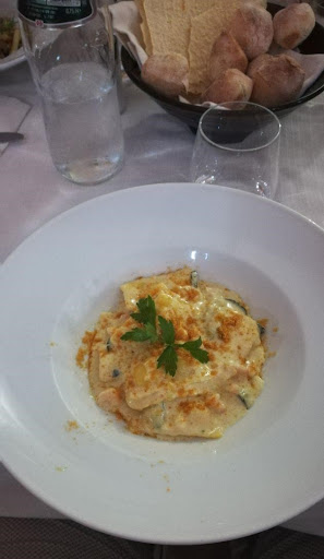 Read moreOre 13,30.... ristorante vuoto, nessuno accoglie i clienti, nessuno nelle sale, aspettiamo 4 minuti....non viene nessuno! Proviamo a chiamare.... urliamo "c'è nessuno?" Niente! Mi addentro nella sala deserta e vado verso le cucine, intravedo del personale e cerco di richiamare l'attenzione! Finalmente un cameriere ci viene incontro e con cipiglio da sergente inquadrature ci invita a tornare nella hall e ci chiede se abbiamo prenotato.... guardo allibito le sale deserte ....il personaggio ci bac getta dicendo che non dovevamo azzardarci a entrare verso le cucine, senza garbo senza sentore di accoglienza, continuando a bacchettare con atteggiamento militare... A nulla servono le nostre lamentele.... A un certo punto esasperato perdo la pazienza fino a urlare la mancanza di professionalità, l'insistenza polemica e ricordando che comunque la regola è accontentare il cliente, inseguito da parole di rimprovero decidiamo di andare via! La proprietaria accorsa non è entrata nel merito cercando di zittire il cameriere e salvaguardando i clienti. Consiglio i gestori di selezionare meglio il personale e educarlo e istruirlo, spiegando che il cliente è cosa preziosa e và coccolato mettendolo a suo agio in ogni modo, che l'accoglienza è la prima cosa bella ristorazione, che il sorriso e il benvenuto sono l'antipasto migliore, che i clienti portano clienti.... Non solo non metterò più piede in questo locale ma lo sconsiglierò a chiunque incontrerò.... Premetto che sono residente in zona, mi occupo di ricezione turistica anch'io e detesto l'improvvisazione e la presunzione.... per non parlare della mancanza di professionalità e della...