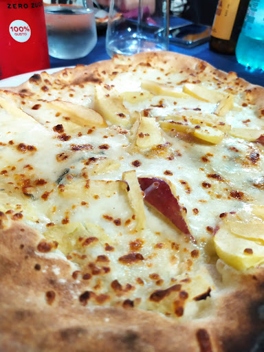 Read moreUn tuffo negli anni 90. Insieme a 7 amici abbiamo deciso di prenotare un tavolo in questo locale. Che dire: trasportati indietro di 30 anni. Location interna formata da 3 sale tutte in perlinato, di cui una, in cui siamo stati noi, con annesso forno a legna e temperatura interna che sfiorava i 35 gradi. L'ingresso per la sala ha un gradone da stadio, ci vuole allenamento per salirci e scenderci. Ingredienti per le pizze disposti in contenitori di plastica qua e là nel bancone, una gentilissima signora che condisce le pizze e le porta ai tavoli più vicini. Menù stampato su carta fotocopiata, tutto ciò che non è scritto si può chiedere al personale di servizio che ha una memoria di ferro. Abbiamo mangiato tutti la pizza, dal piccolo cornicione come un tempo, senza ingredienti troppo complessi o elaborati. La pizza Fabrizio e mele e gorgonzola, da me mangiate erano buonissime. Dolci discreti. Prezzi bassi. Presi dall'atmosfera abbiamo finito la serata cantando canzoni di un tempo e bevendo chupito come quando eravamo adolescenti (in un...