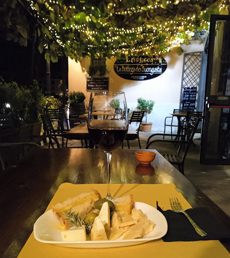 Un luogo molto piacevole dove fare un aperitivo. Al chiuso pochi tavoli e conviene prenotare, ma se non fa freddo come oggi " Agosto " serata del Gonfalone, anche all'aperto si sta benissimo. Ottima selezione di vini con abbinamento di ottimi formaggi, io personalmente sono rimasto molto soddisfatto dalla degustazione del gorgonzola. Se vi piace, approfittate e sarete super consigliati. Abbiamo fatto un aperitivo con tagliere al centro con salumi e formaggi tutto selezionato, avevano anche delle polpette e sono arrivate subito dopo, semplici,ottime. Abbiamo preso due bottiglie di vino di cui ha ascoltato i nostri gusti e prontamente accolte, buone vere! Soddisfattissimo! Servizio gradevole e cordiale, buoni consigli e la pazienza di una sfinge, piacevole il confronto sui prodotti e curiosità, i proprietari hanno tanta cura per il servizio e l'eccellenza dei prodotti, sono davvero gentilissimi. Enoteca piccolina ma ben fornita, con una varietà di vini stupefacente, abbiamo fatto un ottimo aperitivo, nell'insegna della semplicità e della condivisione delle persone passate per caso in occasione del Gonfalone. In conclusione, se cercate uno Spritz e patatine o birretta, passate oltre! Se invece volete per una volta fare una sorta di viaggio enogastronomico vi consiglio di prenotare o se vi capita di passarci provate a chiedere se un posticino libero c'è. La chiusura alla sera è intorno alle 22 - 23 . I prezzi varieranno in base a cosa prenderete, quindi fatelo presente e fate attenzione se proprio devo trovare un difetto. Da Cracco in galleria a Milano potreste spendere di meno 🤣 Ma in linea di massima si può andare dai 10 - 20€ ai 30€ ma se vi lasciate prendere la mano anche 50-60-100€ o anche più. A regà, è consigliato? SI.. qualità super e se vuoi fare anche un regalo non sbaglierai. Ci tornerei? Sì e no, ma nel caso con il freno a mano...