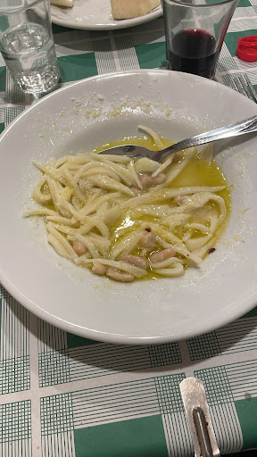 Read moreda provare sagne e fagioli, sia al sugo sia bianche, pollo alla cacciatora, polpette al sugo come quelle della nonna ottime e patate sabbiate. E' una trattoria d'altri tempi, se pretendete camnerieri col papillon e guanti bianchi e cucina gourmet cercatevi un ristorante 5 stelle e non lamentatervi se poi spendete una fortuna e mangiate 2 tort4ellini, due di numero. Qui trovi semplicità, conduzione familiare,...