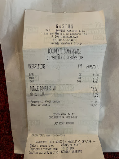 Read moreCostretti a fermarci in questo tugurio, visto che dato l'orario non c'era altra possibilità, abbiamo avuto la malaugurata idea di sederci per poter prendere un caffè e una bottiglia d'acqua a testa. Con una temperatura all'ombra di 30 gradi, più o meno, la "cortese" padrona o almeno quella che pensiamo essere la padrona del posto, ci evitava bellamente dopo averci rivolto più di uno sguardo e preferiva altresi' infilare le mani nella pattumiera che faceva bella mostra di sé in mezzo ai tavoli. Un'altra ragazza preferiva guardarci piuttosto che servirci ed un'altro signore concentrava le sue attenzioni su due donzelle invece che darci retta. Del prezzo di due acque e due caffè pervenutici con tempi biblici niente da dire. Ma se cercate la cortesia questo non è il...