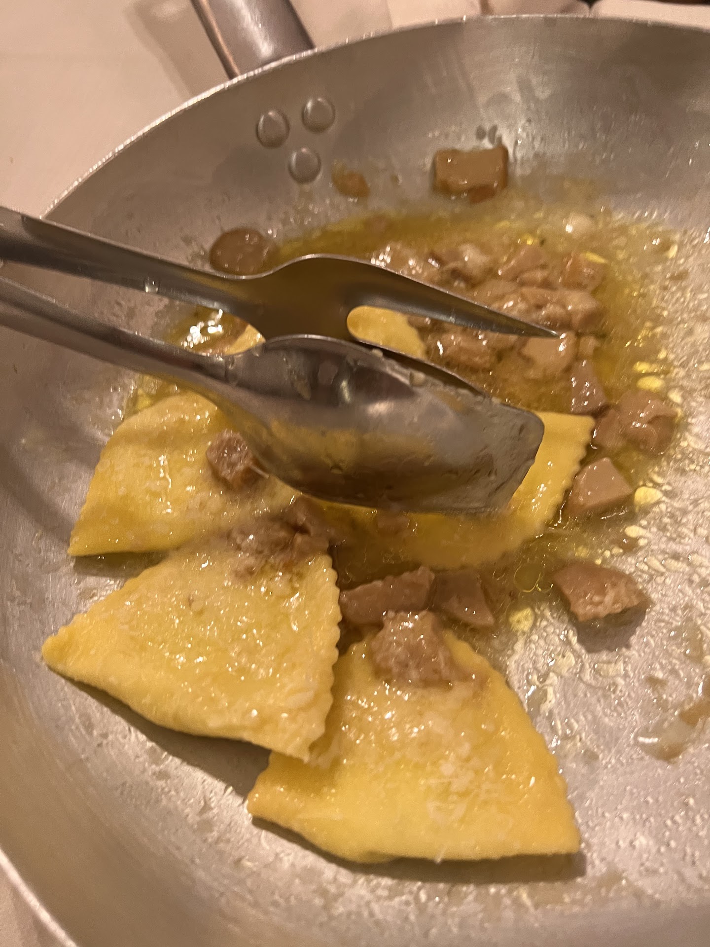POI arrivano i primi, la porzione per due sarà stata 500 grammi di pasta, quella per uno 498. A quel punto nessuno di noi aveva la minima fame residua, dopo gli antipasti (involontari), avanziamo parecchia pasta, col cui quantitativo si poteva fare un assaggino per tutto il quartiere e avanziamo completamente il secondo che ci viene inscatolato per consumo successivo