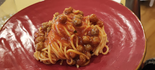 Mi sarebbe piaciuto assaggiare le ceppe con pallottine. Davvero, sembravano ottime, le ho prese a mia figlia di 5 anni: in genere un po' ne avanza. E invece niente, mi son dovuto accontentare di una forchettata, che è comunque stata sufficiente per capire come mai stavano sparendo alla velocità della luce: erano divine. Pasta perfetta, sugo preciso, per nulla acido, pallottine minuscole, graziose, morbide, da sciogliersi in bocca. Wow.