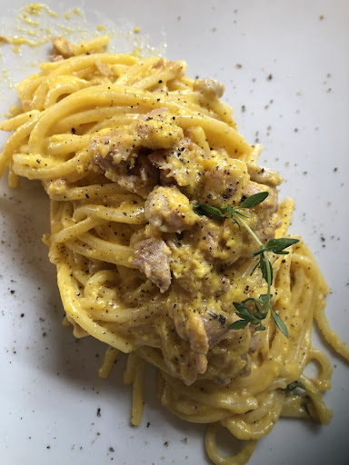 Read moreDurch Zufall fanden wir das kleine Lokal, wir hätte lieber dort gegessen, aber wir konnten nicht und mussten es mitnehmen, aber das hat der Qualität nicht geschadet. Eine hervorragende Carbonara sowie eine Pasta mit Pilzen, beide Gerichte waren auf sehr hohen Level, dazu gab es eine köstliche Käseplatte. Während wir gewartet haben reichte er uns ein Glas Wein aufs Haus.