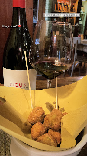 Such a great experience. It happened one night, when me and my girlfriend were wandering around the beautiful city of Ascoli Piceno. We've been capture by the colour and the style of this place, especially by the fantastic shape of their glass. The place is gently illuminated, and has a magic atmosphere. We had a "frittura mista", with all the fried specialties of Ascoli and of course "le live fritte", followed by "Fiorentina Ascolana" a huge steak with bone served with roasted potatoes and mixed vegetables. The wine list is not huge but with the main wines of Marche...