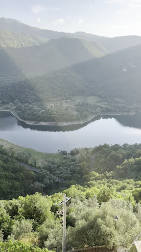 It’s also a fantastic spot for an aperitivo with a charcuterie board after a hike on Mount Navegna. The view overlooking Lake Turano is breathtaking, and in the evening, you can enjoy the sunset directly in front of you, as the natural park and the lake glow orange and swallows fill the sky.