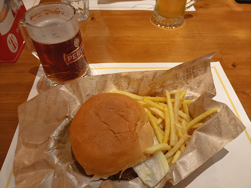 Upon arrival the place it's very noisy (kind of normal cause there's a bowling place) the lady who took our order didn't look like she was happy to be working there in that particular moment. The food was terrible, the burgers were extremely undercooked and soggy. When the old waitres came to clean the table and saw that we all left some food in the plate she asked what was wrong and so we explained on what very rude she answered "oh well next time you can ask to be well done". Definitely not a place to come back cause in addition, I wouldn't spend again €50 for the quality...