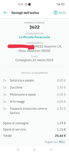 Buongiorno. In merito alla recensione che ho fatto col profilo 'tina alla riscossa', confermo tutto quanto scritto nel post, l'unico errore fatto è la quantità delle focacce, ma l 'ordine è stato eseguito ed evaso, come in allegato da foto. Aggiungo che non ho nessuna mira, (perché dovrei?) Io mi son sempre trovato bene, aggiungo che la recensione negativa dovrebbe essere uno spunto per cercare di migliorare il servizio offerto e non essere intesa come offesa, o peggio, come nel caso del proprietario, mentire come se non fosse successo davvero. Se vuole le allego in seguito la foto della busta degli spaghetti fatti quel giorno per rimediare frettolosamente a una cena finita nel bidone della spazzatura. Il prodotto è arrivato dopo pochi minuti dall'ordine, e garantisco che le focacce erano stantie, vecchie, fredde con una consistenza 'stanca' nella croccantezza che non c'era. Un prodotto di panificazione è facilmente riconoscibile quando non è fresco mi creda. Aggiungo che mi son sorpreso il giorno, perché appena scoperto il posto siamo rimasti felici del prodotto, della gentilezza e della dedizione al lavoro. Ma quel giorno qualcosa è andata storta. Può succedere. Però in questi casi si deve ammettere l'errore e scusarsi, magari rimediare (non cosa da tutti) invece di prenderla come un insulto o peggio mentire che non sia vero. Poi se questa è la sua linea comunicativa faccia...