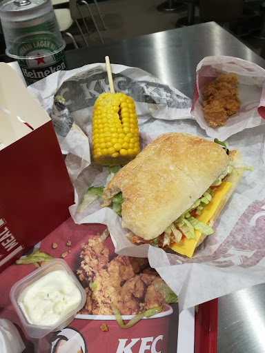 Sconsiglio fortemente a chiunque di recarsi in questo locale kfc. Premetto che non sono una persona schizzinosa, non ho paura a rimboccarmi le maniche e sistemare da me piccole dimenticanze d'igiene quando posso. Ma questo locale ha superato ogni limite. Riconosco come punto buono la cortesia degli impiegati al bancone per questo ho dato due stelle al servizio invece che una. Entrando col mio compagno notiamo subito che nonostante il sistema di condizionamento in alto sembri attivo ogni porta è spalancata rendendo ogni cliente e dipendente vittima delle zanzare (molto accanite e numerose in questo periodo ed orario serale), il pavimento bagnato e sporco, l'erogatore self service di bevande aveva più tracce di bibite addosso che quelle che probabilmente conteneva. Prendiamo l'ordine e ci diamo il cambio ad aspettare mentre lui va al bagno prima di me, torna dopo poco con un'aria seria e mi mette in guardia sul fatto che il bagno è molto sporco e che mi sarebbe probabilmente convenuto usare quello dei disabili se fosse stato libero, scettica decido comunque di entrare e subito dopo la porta d'ingresso vengo travolta da un odore molto simile a quello di una stalla ma più acre, la porta del bagno disabili è aperta e guardando dentro noto il wc ricolmo di escrementi dentro ma soprattutto fuori dalla tazza, essendomi munita di salviette umidificate (in quanto il mio compagno mi aveva avvisato che lui la carta igienica non l'ha trovata) apro con la mano nella salvietta la porta del bagno delle donne, sul WC noto strisce e liquidi di pultroppo non dubbia provenienza, capelli sul portacartaigenica e la puzza era da voltastomaco, non ho voluto appoggiare nulla su nessuna superficie e dopo aver ponderato qualche secondo con la salvietta premuta sul naso ho notato di stare calpestando dei residui di feci sul pavimento . Non c'è l'ho fatta ed ho deciso di uscire immediatamente da quel posto che mi stava per far venire i conati di vomito (ribadisco che non sono una persona schizzinosa o che ha paura di sporcarsi). La fame mi era totalmente passata, il panino del mio ragazzo aveva la pancetta cruda e i bites di formaggio dentro sembravano ancora congelati. Abbiamo finito in fretta di mangiare (assieme alle zanzare) ed abbiamo lasciato il posto di getto. Non mi sono mai sentita così a disagio in un locale di fast food da avere i brividi per la schiena tanto era sgradevole la situazione. Un posto come questo ha superato ogni norma e protocollo igienico con enorme vantaggio. Preferirei dovermi servire a vita dei cessi chimici o delle stazioni di servizio degli autogrill piuttosto che rimetterci piede, mi sembra assurdo quanto la situazione fosse così grave da farmi sentire psicologicamente fortemente a disagio costante e con il timore di toccare il cibo acquistato. Esperienza...