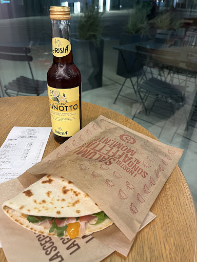 Read moreorganizzazione pessima alla cassa. Alle 12:25, il primo orario disponibile è 13:05-13:10 (va beh, poco importa, effettivamente con gli uffici...). Pago con l'app (salta la fila), alle 12:55 mi reco in Piadineria. Coda infinita alla cassa anche per chi ha ordinato con l'app. Alle 13:08 il mio ordine passa allo stato completato sulla app. Chi è in cassa nel frattempo sta chiedendo scansionando gli ordini e stampando lo scontrino. Bene, arriva il mio turno e anziché consegnarmi l'ordine, vedo che segna qualcosa su un post-it... i minuti passano, alle 13:15 ancora nulla. Mi sposto e noto che sul bancone in cucina ci sono tantissime piadine pronte da consegnare. Alle 13:20, finalmente chi è in cassa prende i post-it e si reca in cucina, recupera 3-4 piadine e inizia la distribuzione. Alle 13:22 ecco la mia che probabilmente era pronta alle 13:08 e infatti è fredda. In tutto questo tempo ho solo potuto vedere che gli ordini in loco venivano consegnati appena pronti (lo testimoniano i buzzer) mentre la disorganizzazione per gli ordini in app dilagava. Capisco l'ora di punta, ma forse va...