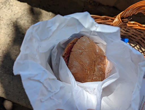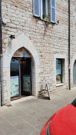 Arrivati all'una, c'era un pó di coda e il ragazzo che gestisce i gelati, vista la coda, ci dice che avremmo dovuto aspettare 30 minuti (QUALUNQUE TEMPISTICA VI DIANO, RADDOPPIATE, SE NON DI PIÚ). Iniziamo ad aspettare e dopo un 10 minuti ci viene chiesto se volessimo un'acqua o un bicchiere di vino visto il caldo insostenibile (che vengono scalati dal tuo ordine OVVIAMENTE, ma questo non lo dicono fino a quando non stai per pagare). Il prezzo non é fisso a 5€, ma si puó alzare anche a 7€ per un panino, se decidi di mettere un certo pecorino piuttosto che due fette in piú di affettato (considerando che una bottiglia d'acqua costa venti centesimi, state pagando un panino fino a ⚠️⚠️⚠️6,80€⚠️⚠️⚠️). Sono bravi a raccontare una storia, ma né i formaggi sono particolarmente buoni o difficili da trovare, ne gli affettati qualcosa che non troverete da altre parti. Andate ad un supermercato, e troverete le stesse cose. Abbiamo aspettato quasi un'ora e venti in coda con venti persone davanti in coda, NON FATE LO STESSO ERRORE e cercatevi qualcos'altro ad un prezzo normale (non dovreste pagare piú di 3,50 per un panino), questo locale é una TRAPPOLA PER TURISTI (manco in regola), che peraltro promuove l'inquinamento da rifiuti alimentari di Assisi.