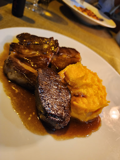 1h for main courses, when they come, my dish which I CLEARLY asked the maitre francesco to have the side changed, wasn't, here I go eating this tasteless sweet potato puree. The pork was severely overcooked and dry. Had to send it back, as couldn't eat it.