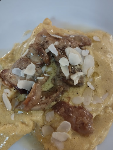 Come premessa metto in punto primo che non si può dare zero ad un posto così ignobile per persone e quindi ho dato un stella. Iniziamo col dire che appena entrati nel giorno di Pasqua siamo stati accolti da una bestemmia del cameriere sentita dalle mie acute orecchie e il cameriere pensava che non lo avremmo sentito. Servizio poco calmo e troppo rumoroso ed inoltre da notare c'è la poca distanza dei tavoli per il covid. L'unica cosa decente è stata la lasagna che servita su un piatto ignobile era, quasi, buona però era in abbondanza. Pietanze con peli all'interno e molto carenti di sostanza. Inoltre i nostri parenti si sono scomodati da luoghi molto lontani per venire ad assistere ad uno spettacolo così vergognoso. Vi consiglio quindi di restare a casa vostra e mangiare cibo di cani che sicuramente potrebbe essere più buono del cibo servito in...