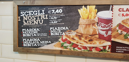 Piadina = A warmed flat bread filled with whatever you want. My favourite is Salsiccia e spinaci (la rustica).