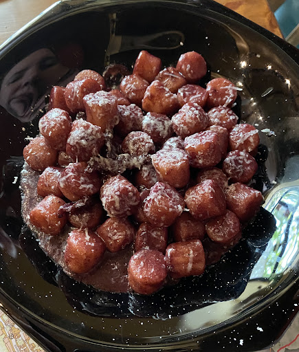 Read moreSiamo stati per il "cenone" di fine anno ma l'atmosfera natalizia o comunque di festa non si respirava proprio, addobbi inesistenti, tavole "apparecchiate" con foglio di carta rettangolare tipo fast food. Il locale era molto stretto e piccolo e il nostro tavolo era attaccato ad un altro con notevole disagio e disturbo ogniqualvolta le altre persone si alzavano. Riguardo al cibo hanno portato un antipasto con ricotta formaggio e qualche salume molto "povero" come piatto ma cmq buono, i primi piatti per quanto cucinati in modo accettabile non rispettavano in nessun modo la tradizione di un veglione e le portate erano mignon. Il secondo invece è stato disastroso quello che doveva essere un maialino con profumi di sottobosco era in realtà una fettina di carne non più lunga di 7 cm, i pochi funghi avevano invece una consistenza molle e non erano per niente saporiti. Capitolo dolce forse la cosa più semplice è andata ancora peggio, un semifreddo dal diametro di una moneta da 2 euro completamente sciolto e dal sapore acre. Nel menù era previsto anche un bicchiere di spumante che però non abbiamo bevuto perchè siamo andati via prima. Costo totale 110 euro + 7,50 per mezzo litro di vino della casa. Prezzo completamente esagerato per quello che è stato consumato e che non ci ha per nulla saziato....