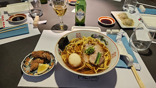 I recently visited this Japanese restaurant with my brother and had a wonderful experience. We started with gyoza as a starter, which was really good, followed by a delicious bowl of ramen. The ramen eggs with a perfectly jammy yolk. The customer service was kind and welcoming, and the environment had a cool vibe. The dessert, especially the one with fruits, was very tasty. If I had to suggest a small improvement, I’d say the ramen could be a bit more spicy (we asked for some spicy condiment to add to our ramen, I they kindly brought some for us anyway) and a few more noodles.