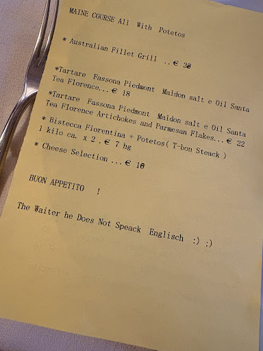 We discovered this great restaurant only thanks to tripadvisor. From outside you would not realize that it is one of the best Italian restaurant in the area! Cute typical decoration, two very kind hosts, they speak English. We went on a Thursday evening (recommended when you want to avoid Saturday's rush) and had an excellent menu, offered only that day. For 45 euro per person we had delicious antipasti (tartare, cheese, salami, prosciutto...), main course (one of the best beef ever, special Storica di Asso potatoes), dessert, coffee, wine, water and digestifs. And some other small surprises here and then during the courses! We absolutely recommend. Casual dress code, you may better reserve on weekends, parking free in the evening from 19h00 onwards in...