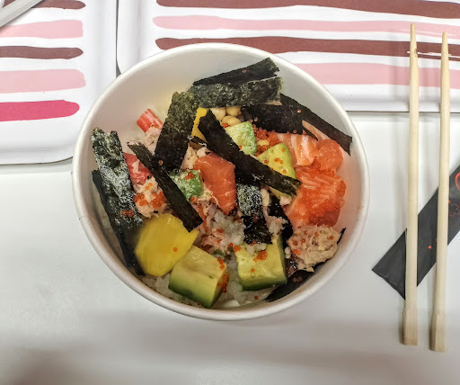 Read moreCercavamo un posto per un pranzo veloce e sano. Comodissimo per il parcheggio, vicino al centro. Non conoscevo la tipologia del Poke. In pratica ci è stato offerto un menù per comporre la nostra ciotola. In base alla scelta tra piccola, media o grande si possono aggiungere più ingredienti. Abbiamo scelto la ciotola media, con proteine salmone, tonno e a scelta insalata, pomodorini e salsa. Peccato non avere la possibilità di aggiungere almeno dei crackers. Bibite a scelta. Piatti serviti rapidamente. Purtroppo l'ambiente è freddo, ho preferito tenere la giacca...anche il bagno (pulitissimo) era ghiacciato. Come prima esperienza di questo tipo di pranzo ho apprezzato molto la scelta e la qualità degli ingredienti. Lo consiglio...
