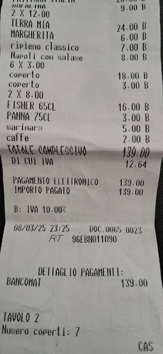 Il ristorante si presenta quasi come "di lusso", con le tovaglie di tessuto, i copri sedia ed un coperto di ben 3.00€ a persona (davvero alto se si pensa che una coppia arriva a pagare già 6.00 € per niente e se fosse stata una tavolata di 10 persone per loro sarebbe stato tutto guadagno!) ma alla fine di lusso ha ben poco, soprattutto per quanto riguarda il servizio. Siamo partiti con il cameriere che mi porta il piatto per i fritti tutto sporco di puntini neri che non erano parte della porcellana, al che gli chiedo di cambiarlo e lo fa subito portandomene uno pulito. Da lì a poco arrivano i fritti, niente da dire... crocchè buono anche se senza mozzarella, ma fatto bene e di vera patata, mentre stiamo mangiando tranquillamente arrivano le pizze 🫣 era molto strano arrivassero così presto, il cameriere mi toglie il piatto in tempi record nonostante avessimo ancora da mangiare un crocchè senza permettermi neanche di replicare, mi cambia le posate e mi serve la pizza, lasciando quella per il mio compagno ad un angolo del tavolo lì per tutto il tempo... dopo un po' ci rendiamo conto che era una bufalina e non una margherita, aveva semplicemente servito le pizze di un altro tavolo a noi. Finiamo di mangiare i fritti, cerchiamo di recuperare la pizza lì buttata nell'angolo e mangiamo. La passata Mutti (come si legge da menù) sulla pizza è davvero una nota super stonata: non è condita ed è talmente abbondante da arrivare al piatto quasi cruda donando alla pizza un sapore dolciastro stranissimo che non mi è piaciuto, impasto e cottura buoni ma di certo non il top...