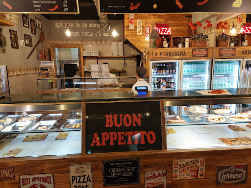 Cercavamo una pizzeria al volo e per strada ci indicano che c'è questa pizzeria d'asporto principalmente e quindi ci fermiamo ed ordiniamo dei tranci tra cui quello con patate schiacciate e salsiccia, con ragù alla bolognese, Margherita e ortolana. Pochi tavoli piccoli per potersi sedere, locale piccolo ma funzionale, hanno dei tabelloni con prezzi, ingredienti e preferenze delle varie pietanze. Abbiamo preso anche dei crocché ed Arancini. Prezzi nella norma, la pizza era verme re squisita. C'è anche la possibilità di ordinare quelle grandi rotonde oppure i tranci classici, vasta scelta delle pizze e di crocché, arancini e fritture varie. Personale gentile, la signora scherzava con dei ragazzi che presumo conoscesse già, mi ha fatto un'ottima impressione. Ci ritornerò...