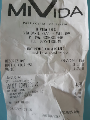 Read moreCome già riportato in precedente recensione ribadisco che il codice code, scaricato per verificare il menù, non prevede la gelateria per cui la scelta di un gelato deve avvenire solo tramite visione al banco considerata la poca professionalita del cameriere .. il costo per un gelato da euro 2.50 servito in esterno è raddoppiato (€5) senza poter capire la motivazione considerato che il servizio esterno prevede un sovraorezzo del 20%..infatti il caffè servito, dal costo di 1 euro è costato con sovrapprezzo euro 1.20.. . Caricato nel conto una granita mai servita per cui se non vi era attenzione si sarebbe pagato 5 euro in più di quanto effettivamente consumato.. Credo sia una buona location al centro città ma bisogna rivedere il servizio e la professionalita del...