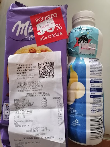 Ieri sera mi sono fermata presso questo Autogrill. Ho acquistato Mila Yogurt 1,15Euro (invece che 2,30€) + Milka XL Cookies da 1,98Euro (invece che 3,95€). Sommando il costo dei due prodotti scontati avrei dovuto pagare 3,13Euro. Arrivata in cassa invece, ho pagato 4,28Euro. Ho chiesto spiegazioni alla cassiera, la quale prima, scocciata, mi ha detto di aver già applicato lo sconto, poi, quando ho cercato di farle guardare lo scontrino per farle notare che il prezzo indicato con l'adesivo applicato da Autogrill sui prodotti non corrispondeva a quello battuto in cassa, ha detto che l'adesivo promozionale non indicava il prezzo ma lo sconto, dopodiché si è girata dall'altra parte e ha continuato a fare cassa con i clienti successivi. E' solo un euro di differenza, è vero, ma mi sono sentita truffata.