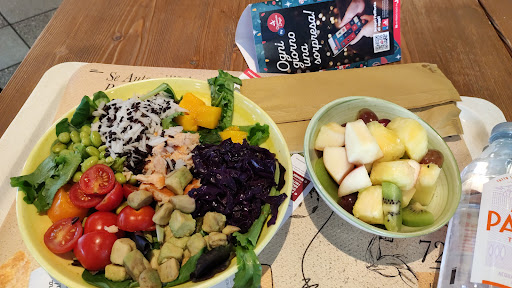 Autogrill ben organizzato con proposte e promo di pranzo molto invitanti sono andata di passaggio e ho trovato un personale accogliente e gentile una location pulita e ben attrezzata le promo pranzo erano a 15,90 euro e potevi mangiare o primo e dolce con bibita o secondo con frutta e bibita o insalata o poke con frutta e bibita questo ho preso io ed era una bella porzione e sinceramente molto fresco e gustoso consiglio vivamente di provare se vi trovate di passaggio!!!! Buone feste a tutti 🎉🥳💯🔝👍