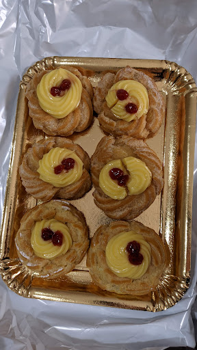 Ho recentemente comprato le zeppole di San Giuseppe classiche presso questa pasticceria e devo dire che sono rimasto molto soddisfatto del mio acquisto. Il sapore di queste zeppole era semplicemente delizioso. La pasta era morbida e leggera, mentre la crema era dolce e delicata, con un tocco di vaniglia che la rendeva ancora più gustosa. Non potevo chiedere di meglio per una zeppola tradizionale. Inoltre, ho apprezzato molto l'assortimento di pasticceria presente in questa pasticceria. C'era un'ampia scelta di dolci e biscotti, tutti di alta qualità e con ingredienti freschi e genuini. Il personale della pasticceria era anche molto cordiale e disponibile, pronto a rispondere a qualsiasi domanda o richiesta. L'ambiente era pulito e accogliente, e ho apprezzato il fatto che la pasticceria avesse anche un'area di seduta dove poter gustare i dolci sul posto. In definitiva, se cercate una pasticceria che offra zeppole di San Giuseppe classiche di alta qualità e un'ampia scelta di dolci deliziosi, vi consiglio caldamente di visitare questa pasticceria. Sono sicuro che ne rimarrete...