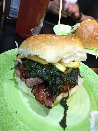 Read moreCercavamo un posto dove fermaci a mangiare qualcosa dopo in serata passata con amici, ci siamo fermati da loro che sono aperti fino a tardi . Ambiente informale . Abbiamo preso una porzione di patatine (ni) la frittatina non mi ha convinto . Il panino non era male anche se abbastanza unto. C’è la possibilità di comporre i panini. Ho scelto hamburger di chinina , provola , melanzane a funghetto e cipolla caramellata . Dal menù ho visto che fanno anche...