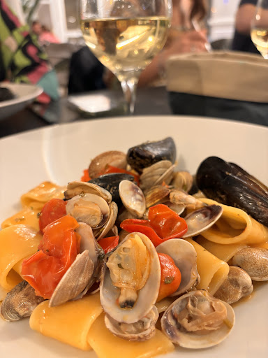 I returned with a family group of 8 a few weeks later, and the food was fantastic, and we had a fabulous time. The review for food reflects the smaller group meal. Excellent starters of the sea and of the earth. Tasty pasta plates for everyone. Grilled tuna - delicious. Mixed desserts to finish. Highly recommended for this...