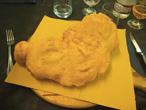 Per quanto riguarda il cibo, ho ordinato una pasta praticamente immangiabile. Ho anche notato che alcuni impiattamenti di pasta avvengono con l'ausilio delle mani, cosa che sarebbe accettabile se non fosse per il fatto che chi impiatta poi gira per il ristorante toccando varie cose senza lavarsi le mani. Un altro amico ha ricevuto una cotoletta freddissima, evidentemente preparata molto tempo prima per accelerare i tempi di attesa.