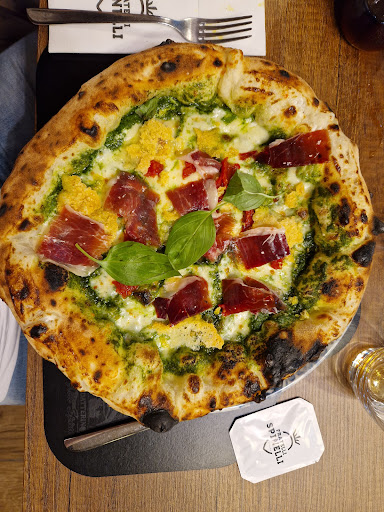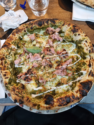 Ogni volta che qualcuno viene da me a casa e non ho la cena organizzata, lo porto in questo locale, perché è letteralmente sotto casa e perché il prodotto è buono. Ma soprattutto perché nelle svariate volte che sono stato in questo posto non mi è mai capitato di avere come "maître", come 3 giorni fa, tale "Fabio" (se ho ben capito) il cui comportamento mi occuperò di deferire alla locale Procura della Repubblica. Il "gentiluomo" propone a me e i miei commensali un nuovo tipo di impasto, il cui nome non avevamo ben capito causa mascherina, e che corrisponde all'impasto "alla pala" invecchiato 72 ore. Essendo una persona abitudinaria, rifiuto, ma i miei commensali accettano la proposta e chiedono che venga servita la pizza con questo particolare tipo di impasto. Dopo un'attesa ingiustificatamente lunga (vista la quantità di clienti presenti), arrivano le pizze. La mia era molto buona, ma quella dei miei due commensali presentava un leggero problema: il super-impasto-innovativo dei miei stivali, al taglio faceva un rumore simile a quello della fetta biscottata quando la spezzi. Non era una pizza, era una focaccia malandata. Non posso parlare per il condimento perché non l'ho assaggiata. I miei commensali, al passagio del "maître gentiluomo" fanno presente il problema, in quanto col coltello fornito a malapena era possibile tagliarlo il "super-impasto-innovativo". Risposta, con la proprietà di linguaggio del classico becero napoletano e da venditore di aspirapolveri porta a porta al primo giorno di lavoro: "sì, ma siete voi clienti che dovete capire di cosa si tratta dal momento che uno ve lo dice, non è responsabilità mia". Informo il "maître gentiluomo" che la sua risposta è un comportamento anticommerciale ed offensivo, perché non posso prendermi una laurea in pizzeria per capire che mi stai proponendo una pizza/fetta biscottata, prendo il cappotto ed invito i miei ospiti ad andare in cassa per pagare ed andarsene. Preciso che né le parole mie né quelle dei miei ospiti sono state riferite ad alta voce, e sono state certamente inudibili dai clienti in sala visto il vociare di sottofondo. Il "maître gentiluomo" ci rincorre e, nell'ordine, fa le seguenti cose, tutte con tono e comportamento verbalmente violento, prevaricatorio e camorristico: ci dice di "aver fatto tarantelle in sala" (falso); mi invita più volte prendendomi col braccio e dandomi del tu (entrambe cose non autorizzate) ad uscire fuori e discuterne da "uomini veri" (che io interpreto come una minaccia bella e buona); ci fanno il conto dopo quasi ben DIECI volte che era stato richiesto, difatti impedendoci di uscire perché andare via senza pagare sarebbe stato reato; ci invita ad andarcene senza mai più tornare ("lasciate la recensione negativa che m' pass pu' cazz"), rifiutando la stretta di mano offerta in segno distensivo, accusandoci di essere "senza intelletto". Mi spiace perché il locale è bello e, a parte questo famoso impasto innovativo dei miei stivali, il prodotto è buono. Ma il camorrismo non si accetta mai, va querelato nelle sedi opportune perché gentaglia simile non può stare in un'attività commerciale. Caro "Fabio maître gentiluomo", visto che "t' pass pu' cazz" della recensione negativa, te la lascio volentieri. Chissà se "t' pass pu' cazz" pure di un esposto in Procura. Lo scopriremo in Tribunale, bulletto da...