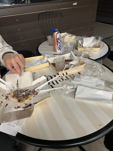Read moreSono stata due volte in questo posto e mi è andata male una peggio dell'altra, graffe striminzite e secche con a malapena un filo di nutella (mai vista una graffa così in vita mia), i tizi alla cassa uno più scorbutico dell'altro, la seconda volta vado per mangiare un crumble cookie il tizio alla cassa mi dice che ne è rimasto soltanto uno disponibile e che dovevo scegliere io come farcirlo (in vetrina ce n'erano almeno una decina tutti già farciti in modo diverso) arriva il mio turno e mi danno un biscotto normale (ovviamente striminzito e secco) con un po' di nutella sopra e due pezzi di kinder bueno (i biscotti in vetrina al mio turno c'erano ancora, ciò significa che non erano stati ne prenotati prima di me ne altro) almeno non chiamateli crumble cookie! 🥲 per non parlare poi del fatto che i tavolini fuori sono sempre sporchi pieni di spazzatura lasciata dal cliente seduto precedentemente e che se ti ci vuoi sedere devi puliterlo tu, tra l'altro se andate molto tardi vi diranno che solo le graffe sono disponibili e non potrete prendere altro, meglio chiudere anziché mettere in difficoltà...