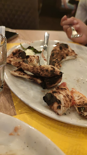 "PERPLESSO" È l'aggettivo che meglio definisce il mio umore dopo aver cenato in questo luogo. Eravamo in 5. Ci siamo accomodati verso le 21, consapevoli di cenare in tempi utili per presenziare ad un evento alle 22.15...vi anticipo che abbiamo tardato. Il motivo maggiore che giustifica tale recensione negativa sta proprio nella lentezza del servizio: nessuno che ci ha porto un menù appena seduti; non vi erano camerieri in sala da poter chiamare per le nostre esigenze; un semplice antipasto, ordinato alle 21.15 circa, che arriva alle 22, dopo solerte sollecitazione; la pizza arriva alle 22.15, il che ci ha obbligato a consumarla di corsa (sapore scadente, bruciata in alcuni punti, ma non mi aspettavo niente di più)...un disastro! Motivi? Colui che sembra il proprietario si occupava della cassa, dei clienti in sala e delle bevande al bancone; il pizzaiolo è solo al forno e spesso portava lui le pizze ai tavoli (con buona pace dell'igiene); chi dava una mano al pizzaiolo era addirittura il ragazzo del delivery, tra una consegna e l'altra, ancora tralasciando l'igiene; gli antipasti li ha consegnati una donna che è uscita dalla cucina con i piatti in una mano e una bambina in braccio ad occupare l'altra parte del corpo...non potevo credere ai miei occhi! Sono letteralmente scappato (e non solo per il ritardo...