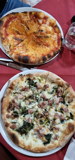 6euro di copeto: una tovaglia di carta/plastica giallina che non viene nemmeno cambiata tra un servizio e l'altro e pane che ancora stiamo aspettando. Visto con i miei occhi all'arrivo di una coppia, poco prima, la signora rassetta con la mano giusto a togliere le molliche, il grosso e via, vai col cambio degli ospiti. Tutto ciò mi ha fatto mandare di traverso i primi piatti, pensando a cosa potessero combinare in cucina. Il servizio al tavolo è in mano a... tutti! Tutti quelli che servono in quel momento, escono fuori persone che si aggirano fra i tavoli mano, mano. Non hanno un grembiule, non una divisa, un segno di riconoscimento che siano del personale e, sembra a un certo momento, che anche quello che ti siede vicino si sia convinto di alzarsi e prestare aiuto. Cosa che, dopo aver aspettato quaranta minuti per 20 arrosticini, arrivati asciutti e mal cotti, diventa verosimile. In quei lunghi periodi di pausa, vi assicuro viene in mente di alzarti e andargli a girare quegli stecchini di arrosticini che sai, arriveranno, prima o poi arriveranno, ma faranno pietà. State alla larga se potete. Siamo stati oltre due ore e il contorno, non lo abbiamo più sollecitato per evitare un altra oretta. Prezzo: tre primi, 20 agoniati arrosticini, due supplì, una porzione di patatine, una birra piccola, una media, due acqua frizzante, una lattina di...