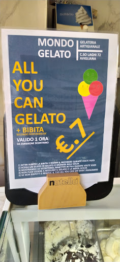 Questo posto è una grande frode. gli ingredienti non hanno molto in comune con il gelato, ci sono solo prodotti chimici dipinti. Quando ad Avigliana ci sono diverse vere gelaterie, non dovresti mai esporti a questo pasticcio alimentato da "Mondo Gelato". Ho avuto problemi con lo stomaco per una settimana dal loro sinistro gelato e i venditori non hanno la minima idea di cosa vendono. Si fondono solo a polvere da una scatola senza etichetta (senza ingredienti scritti, niente) in acqua. È come una roulette russa con la vostra salute.