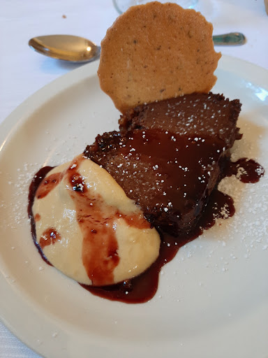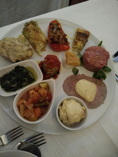 Read moreSitué dans le centre historique mais au nord-ouest, dans une partie moins fréquentée que la Piazza Conte Rosso mais avec tout autant de caractère - et plus accessible. Menu exclusivement en italien. Zut, nos téléphones dont déchargés et nos connaissances en italien culinaire limitées. Comme non-choix nous optons alors pour le menu dégustation 4 plats, au prix raisonnable de 37 euro, qui se propose de faire un échantillonage des plats maison. Et nous avons mangé tout le restaurant ! Et servi à la louche plutôt qu'à la petite cuillère ! Difficile de se rappeler d'un mets en particulier mais tous les morceaux de cette compilation (intégrale?) étaient des hits ! Formule hautement recommandable, à la condition de surveiller drastiquement son régime dans les douze heures précédentes pour pouvoir y aller à fond. Nul cliché hélas donc pour immortaliser le moment. Servi sous une petite tonnelle fort agréable par une gentille jeune fille aux hésitations charmantes et qui semblait émerveillée par notre...