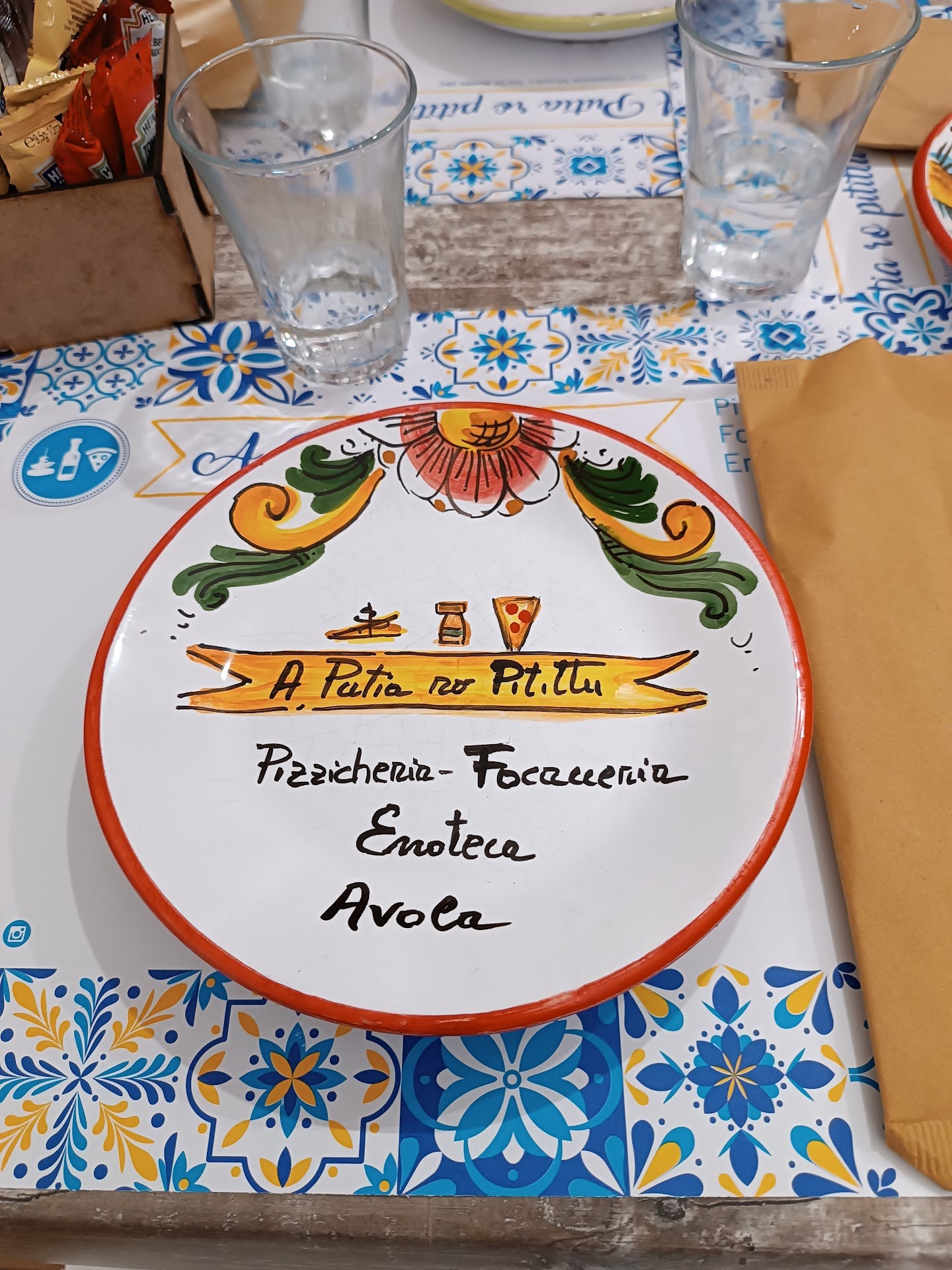 Read moreOttima "putia" situata in una strada del centro storico di Avola, vende prodotti tipici locali e fa da ristorante con piatti sempre a base dei suddetti prodotti tipici. Dispone di spazio esterno e interno, noi abbiamo optato per l'interno, un po' per l'aria condizionata e un po' perché lo spazio esterno è allestito a ridosso della strada. Abbiamo provato il tagliere siciliano, che comprendeva diversi salumi, formaggi e altre prelibatezze accompagnate da condimenti quali confetture e miele, poi abbiamo ordinato polpette tipiche, miniarancini al ragù e alette di pollo.. che dire, tutto squisito, pane compreso (arrostito e condito, una delizia) e non si può non porre l'accento sul servizio attento, e sullo staff composto da tutti ragazzi gentili e attenti. Alla fine ci è stato offerto a sorpresa uno squisito sorbetto al mandarino, ideale per rinfrescarsi. Non ho avuto occasione di provare le invitanti focacce a causa della sazietà, ma cercherò di porre rimedio quanto prima. Rapporto qualità prezzo più che onesto. In periodi di alta stagione consiglio di prenotare, in quanto giorni fa mi è capitato di non trovare posto. Consiglio vivamente a chi vuole provare piatti autentici locali in...