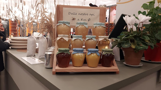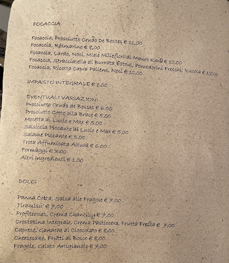 I prodotti di qualità indiscutibilmente sono presenti, come speak e formaggi locali, ma gli abbinamenti e le quantità andrebbero rivisti. Passata di pomodoro molto acida, nessuna base (tipo mozzarella) Una delle due pizze sembrava una focaccia, azzima, con un pochissimo fiordilatte e qualche cenno di trota salmonata. La pasta della pizza era alquanto insipida, bassa, secca, come se fosse schiacciata e stesa con la macchina. Insomma, i prodotti sono presenti ma ci sarebbero da rivedere le basi.