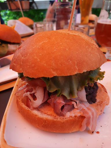 Read moreLocale carino, gestito da giovani. Siamo andati in famiglia in sei, abbiamo preso tutti hamburger e bevuto 2 birre. C'è possibilità sia di pranzare all'interno che all'esterno sul retro, sotto tendoni ed in presenza di una simpatica cabina della funivia: noi abbiamo optato per fuori, essendoci sole ed un'aria piacevole. Panini molto buoni, patatine fritte cotte al punto giusto. Le birre, una weiss alla spina, non male ed una strong ale in bottiglia decisamente buona: consigliate nel e con il menù. Unica pecca, il servizio, troppo lento anche in un orario in cui non c'era ancora presenza di troppa clientela: birre arrivate quasi subito, ma mezzora di attesa per i panini (con i bambini soprattutto un po' di "sofferenza"). A fine pranzo, dopo 20 minuti di attesa, nessuna richiesta di caffè o dolce: abbiamo deciso di uscire rinunciandovi. Nell'insieme, queste le motivazioni delle 3 stelle: vista la buona qualità del cibo, punto a mio avviso sicuramente...