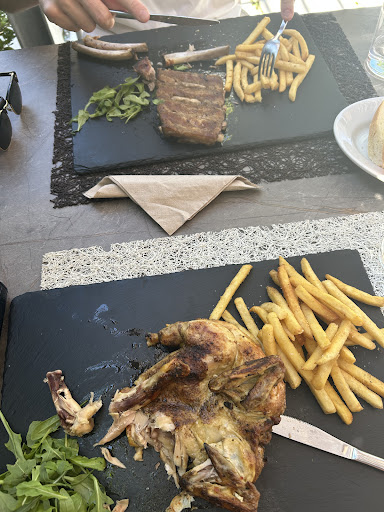 Read moreDopo aver prenotato troviamo la sala interna senza aria condizionata quindi ci accompagnano nel carino giardino esterno ma con poca soluzione alla temperatura calda della stagione! Ordiniamo : Una tartare di manzo. Un filetto di manzo alla griglia. Un polipo scottato. Due verdure saltate. Mezzo di rosso della casa. Un tiramisù. Un caffè. Due grappe. Praticamente un antipasto , due secondi e via...... 100 €uro . Per me non...