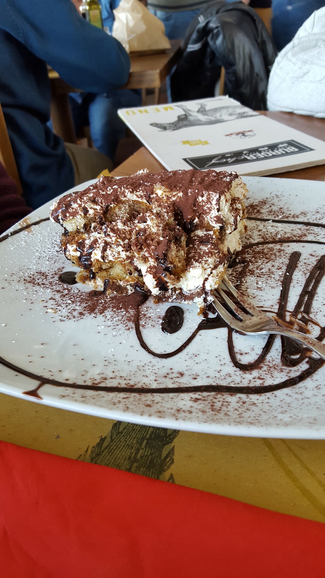 Read moreSono stata per pranzo (eravamo in 4) e sono rimasta delusa da diversi aspetti che nell'insieme mi portano a dare un giudizio negativo. Inizio con ciò che mi è piaciuto: ho mangiato della mozzarella in carrozza davvero buona, anche il burger vegetariano buono e hanno una vista sul lago pazzesca(ma quello non è loro merito)! Riguardo gli aspetti negativi, ciò che ha inciso di più è stato il servizio: abbiamo atteso ben 45 minuti per 4 piatti, mentre la birra inevitabilmente si scaldava. La spiegazione? Il burger vegetariano ha una cottura lunga (avrebbero potuto anticiparlo così da mettersi l'anima in pace, e soprattutto dopo tanta attesa non posso richiamarti perché hai dimenticato di mettere la salsa che era prevista da menù!). Mi porti due piatti di carne, non sarebbe male accompagnarli con del pane, visto che agli altri tavoli era stato offerto. Non puoi chiamami burger anche la pietanza senza panino, soprattutto se per capire questa mancanza devo interpretare le icone di fianco. Non puoi farmi spendere ben 14 € per un hamburger al piatto non cotto come richiesto (stracotto quando era stata chiesta cottura media), senza pane, con delle cipolle non croccanti ma soprattutto con del cheddar che è palesemente una fetta di formaggio fuso (sottiletta per intenderci)! Anche i dolci non erano nulla di entusiasmante, soprattutto il tiramisù che non aveva sapore di caffè, con della Nutella superflua (a quanto pare è il loro ingrediente forte per i dolci perché in pratica era ovunque) e servito come fetta sbriciolata da un lato (vedi foto) e con la forchettina sporca di cioccolato perché poggiata sul topping. Chiudiamo il pranzo con il caffè - che andrebbe portato a fine pasto e non con il dolce! - servito con i cucchiaini di plastica (vi costa molto lavare dei cucchiaini in metallo?). E per finire, il bagno non si chiudeva bene a chiave e se non si era in due rischiavi di ritrovarti un ospite inatteso. Sarò severa, ma io quando esco da un locale voglio sentirmi appagata e qui...
